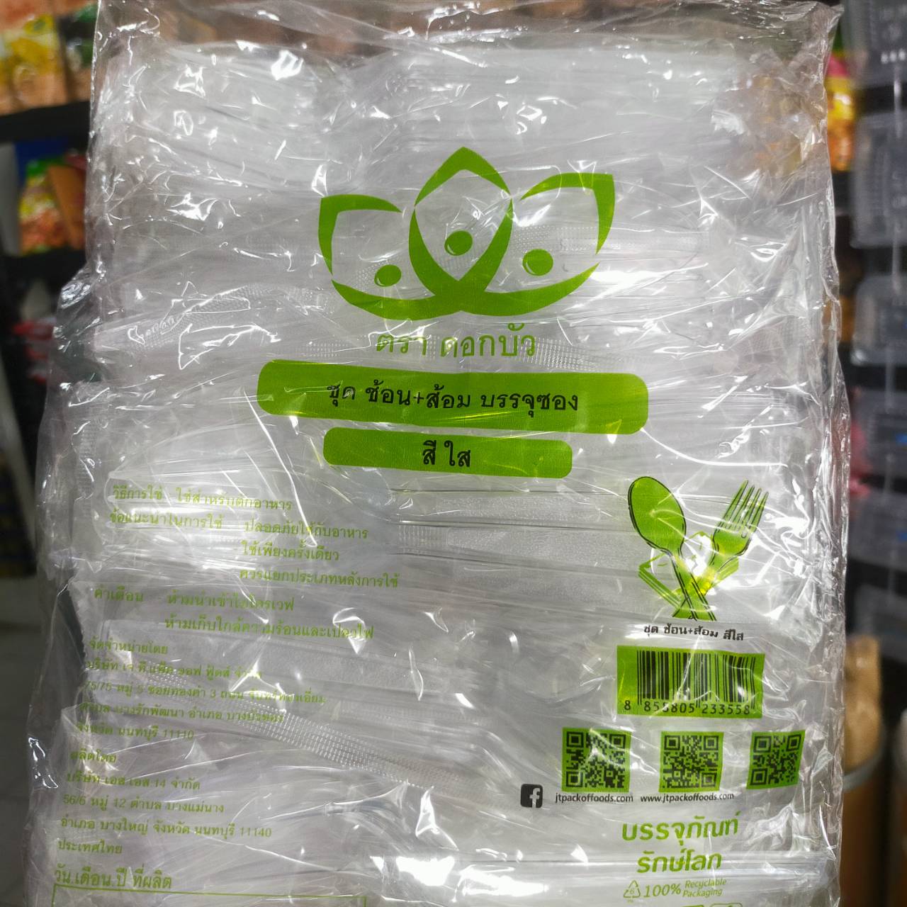 ชุด ช้อน + ส้อม บรรจุซอง สีใส ตราดอกบัว บรรจุ 50 ชุด