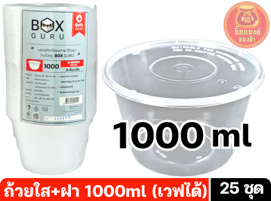 ถ้วยกลมใส+ฝา ขนาด 1000ml. ตรา Box Guru - ฝาปิดสนิท ไม่เลอะ ไม่ซึม - พลาสติก PP แข็ง เหนียว วางซ้อนได้ - เข้าไมโครเวฟได้