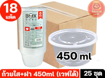 ถ้วยใส+ฝา ขนาด 450ml [1 ลัง บรรจุ 18 แพ็ค (450 ชุด)] ปิดสนิท นำเข้าไมโครเวฟได้