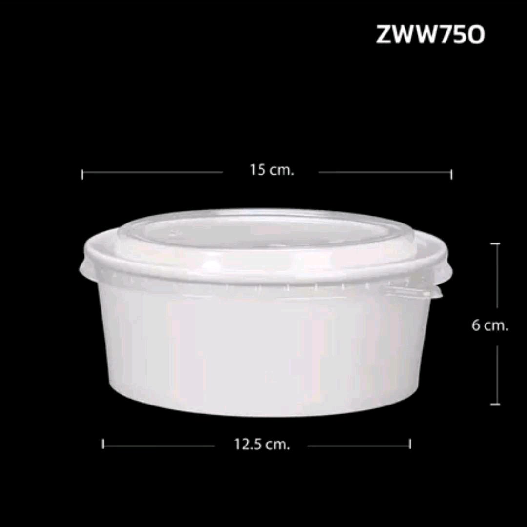 ชามกระดาษสีขาว พร้อมฝา OPS ไม่เป็นไอน้ำ ขนาด 750 ml ตรา EASY LIFE บรรจุ 300 ชุด / ลัง