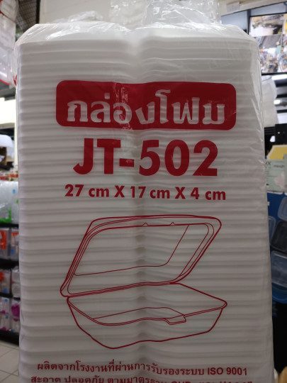 กล่องโฟม JT-502 ขนาด 27cm x 17cm x 4cm บรรจุ 100 ชิ้น / แถว