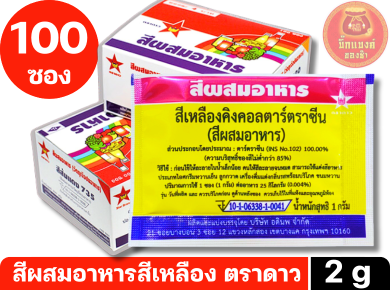 สีผสมอาหารสีเหลือง ตราดาว1กล่องx100ซอง