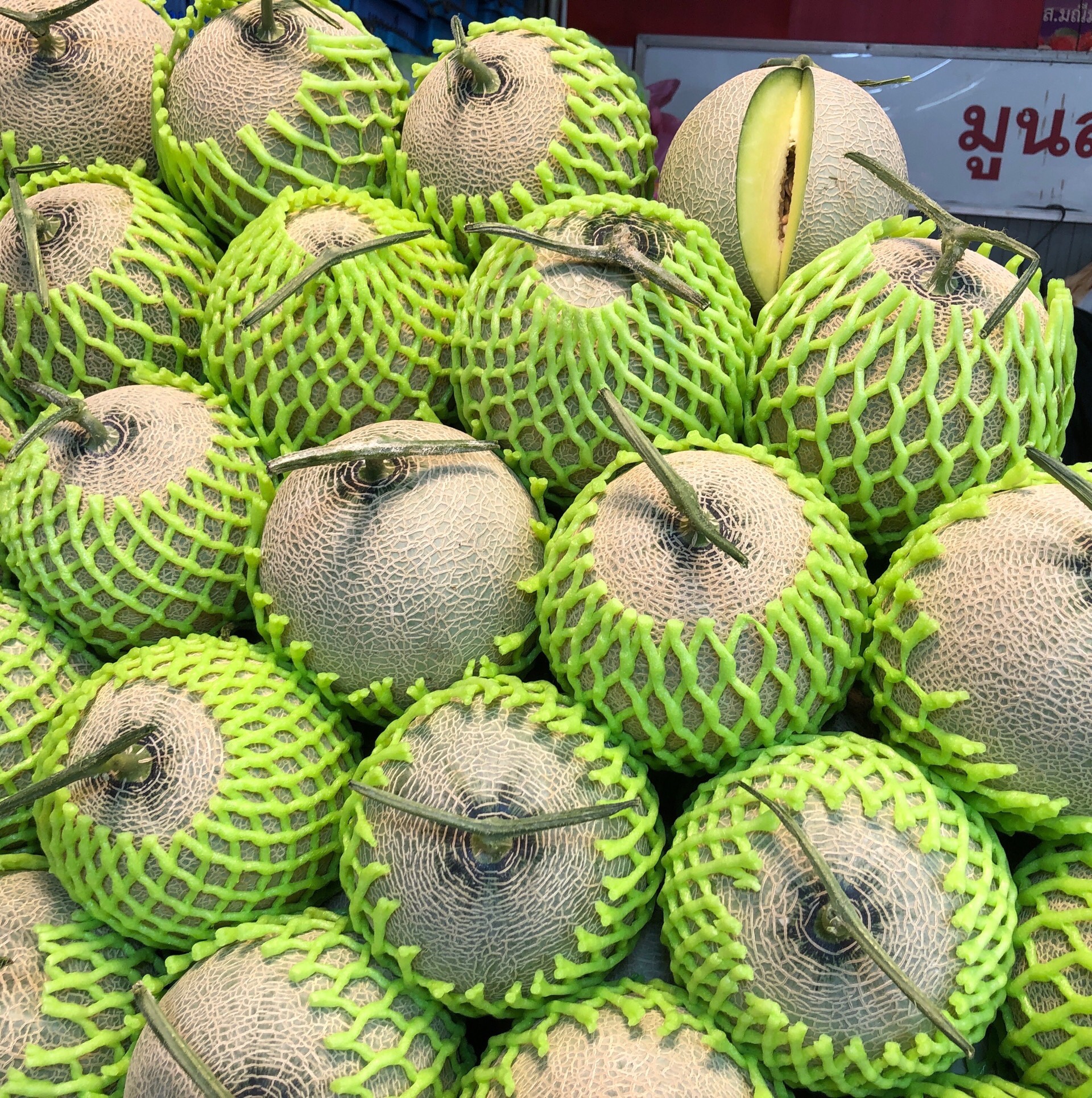 เมลอน เนื้อเขียว เกรด A หวานกรอบอร่อย น้ำหนักประมาณ 1.3 กิโลกรัมถึง 1.8กิโลกรัมเนื้อสวยหวาน ลูกสวยคะรอบนี้รับประกันความอร่อยคะ บรรจุรวมน้ำหนัก 10 กิโลกรัมคะพันธุ์ KT51