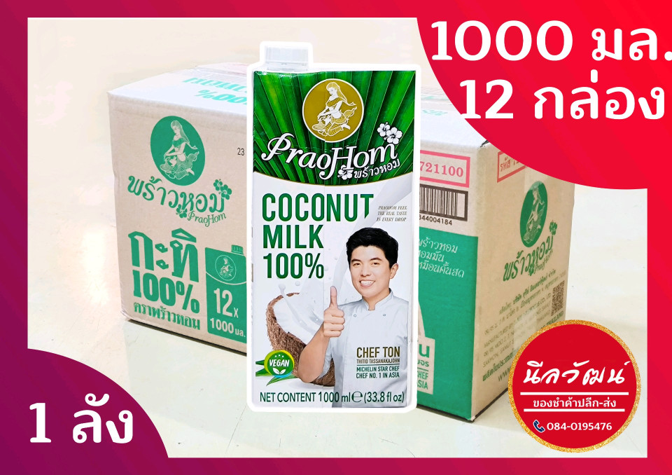 กะทิสำเร็จรูป ตรา พร้าวหอม ขนาด 1000 มล. จำนวน 12 กล่องต่อลัง