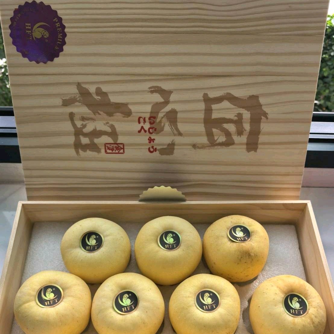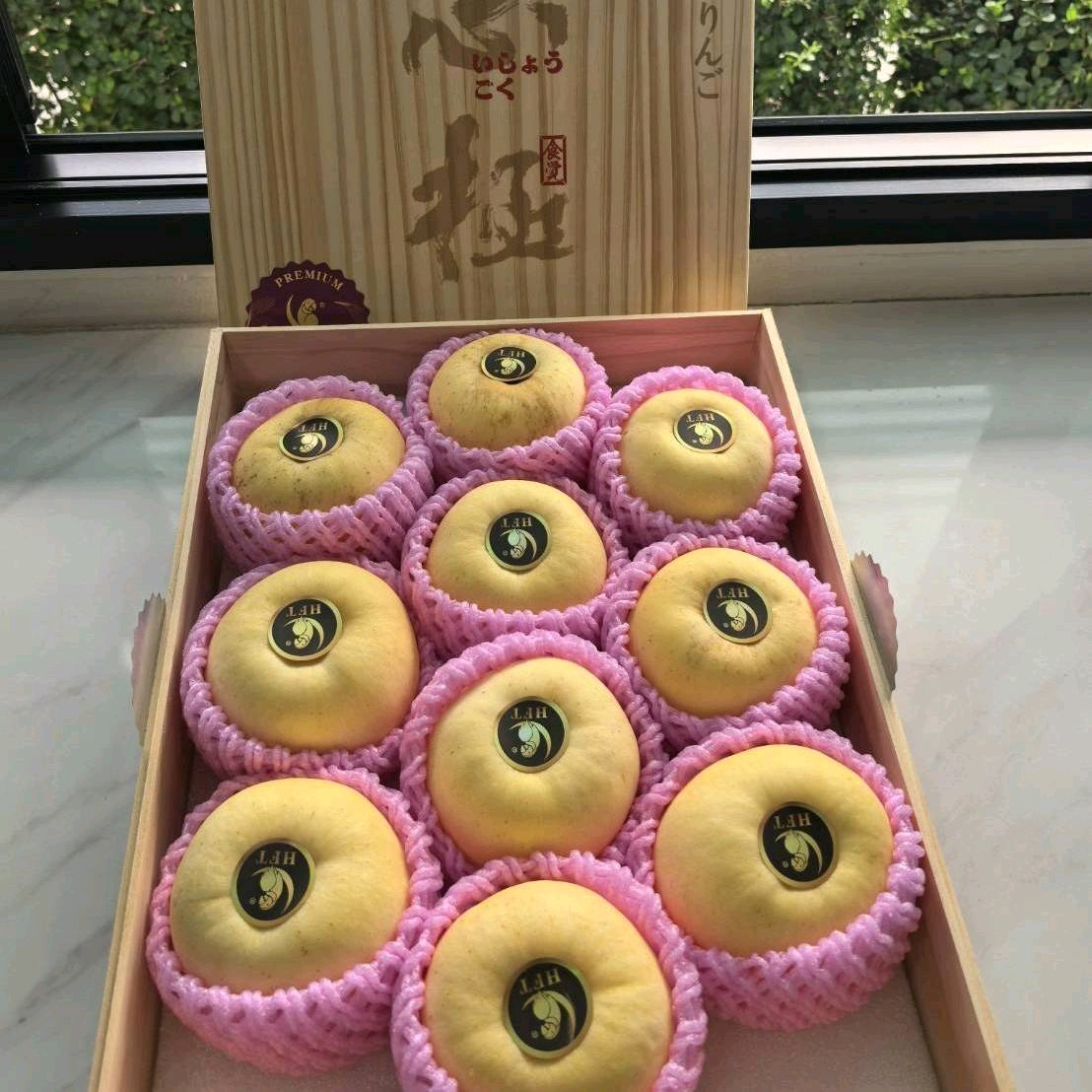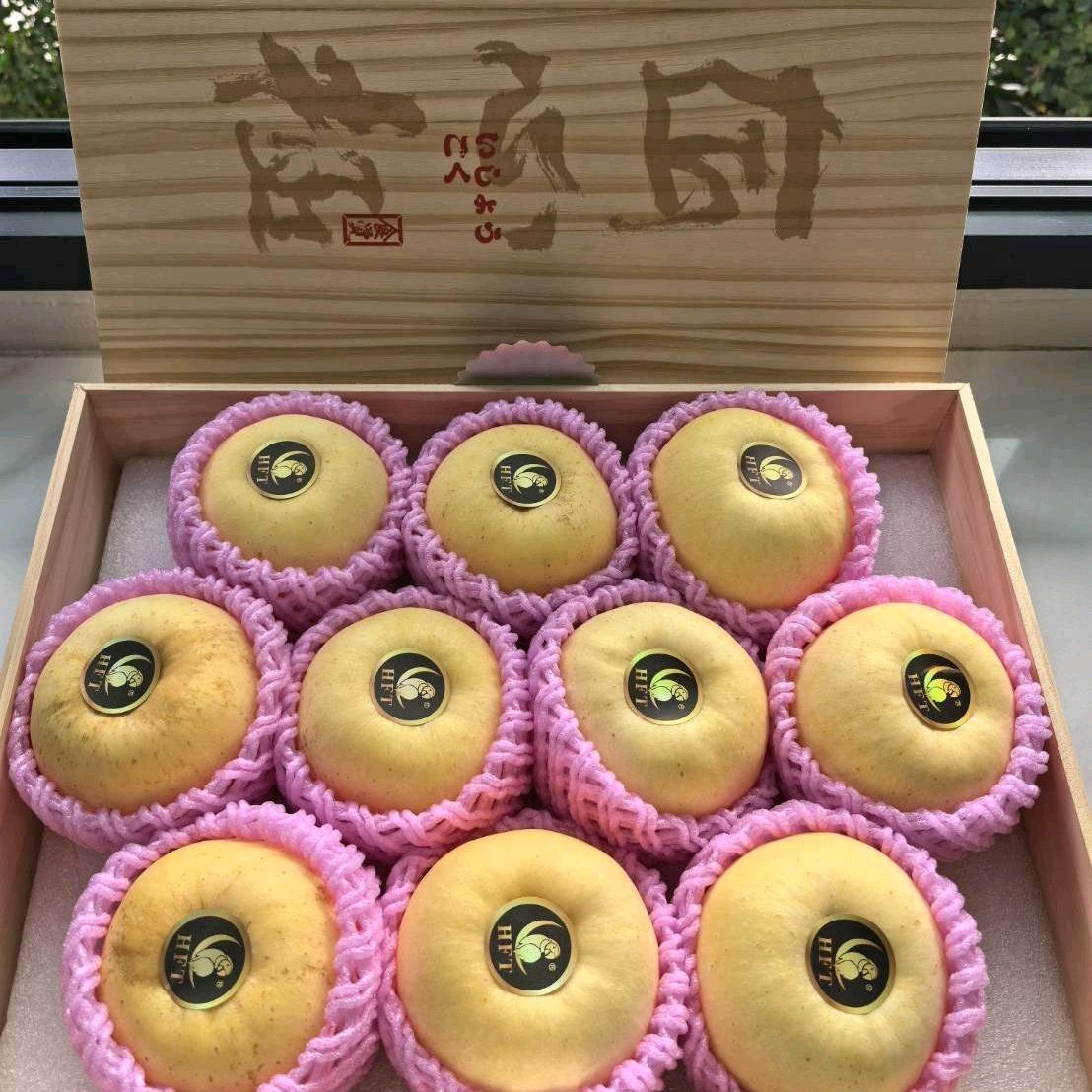 แอปเปิ้ลทอง สายพันธุ์ golden venus 10 ลูก ตรานกแก้ว บรรจุกล่องลังไม้สวยงาม