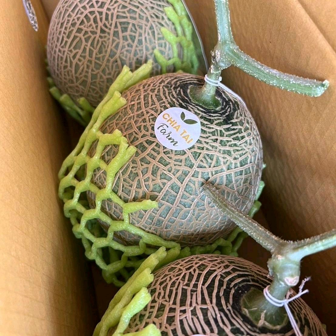 เมล่อนเนื้อเขียว เจียไต๋ฟาร์ม 3 ลูก น้ำหนักรวมต่อกล่อง 3-4 กก.