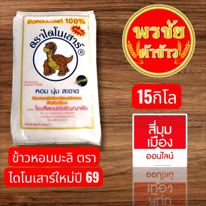 ข้าวหอมมะลิแท ้ตราไดโนเสาร ์ข้าวใหม่ปี 69 บรรจุถุงขนาด 15 กิโลกรัม ข้าวหอมมะลิจังหวัดยโสธร