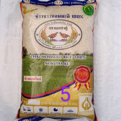 ข้าวหอมมะลิใหม่100% ตรานกทาคู่ 5กก. จากโรงสีพงษ์เจริญ จ.ยโสธร หอมกรุ่น นุ่มกินตามบ้าน