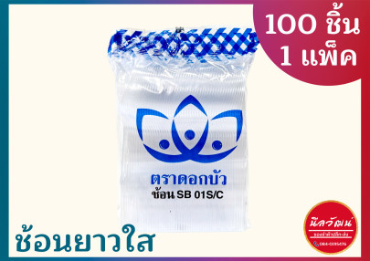 ช้อนยาวพลาสติกใส ตรา ดอกบัว จำนวน 1 แพ็ค บรรจุ 100 ชิ้น