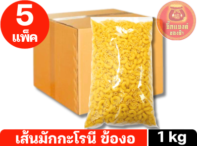 เส้นมักกะโรนี แบบข้องอ อย่างดี 1 กิโลกรัม [1 ลัง บรรจุ 5 ห่อ]