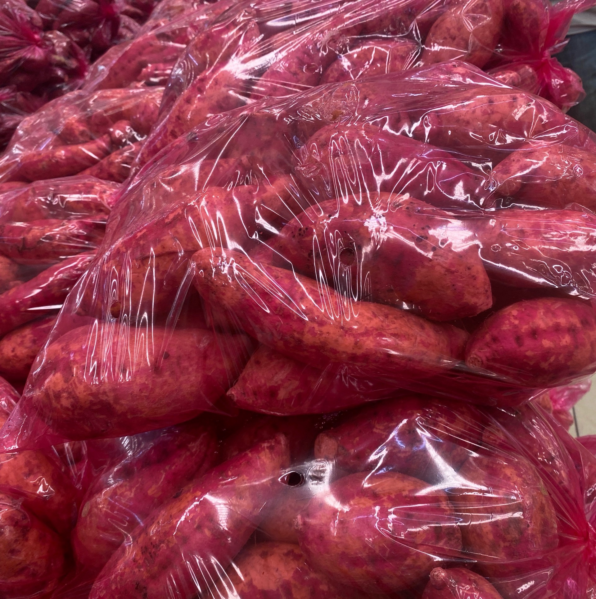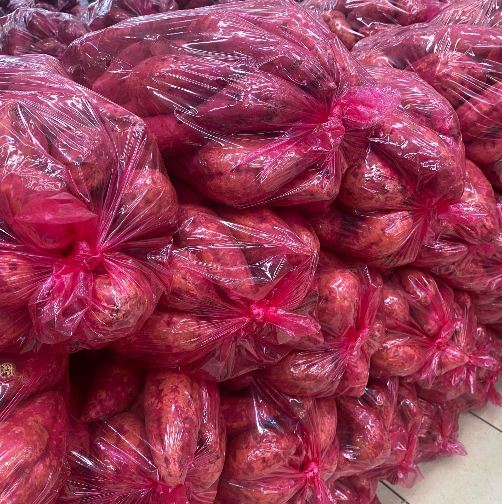 สวยสดใหม่รสชาติหวานมันเนื้อสัมผ้สค่อนข้างหนึบแน่นเมื่อทานตอนร้อน แต่เมื่อเย็นลงเนื้อจะร่วนคล้ายเผือก