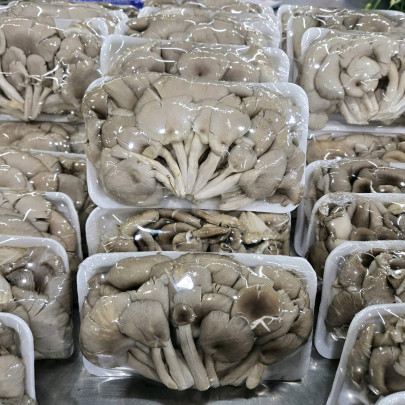เห็ดนางลมแพค แพคละประมาณ 150-160 กรัม บรรจุถุงละ5แพค ราคา 80 บาท