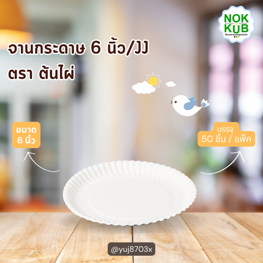 จานกระดาษ 6 นิ้ว 50ชิ้น
