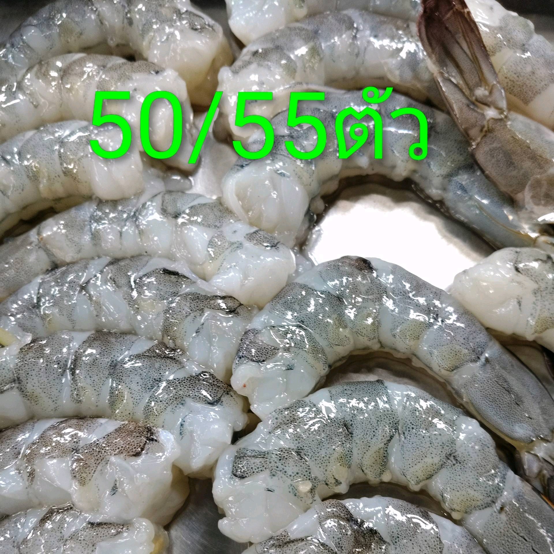 กุ้งขนาด50.55ตัวโลน้ำหนัก 1 กิโลกรัมกุ้งแกะตัดหัวผ่าหลังไว้หาง เสร็จแล้วเหลือ.0.5.5ขีด