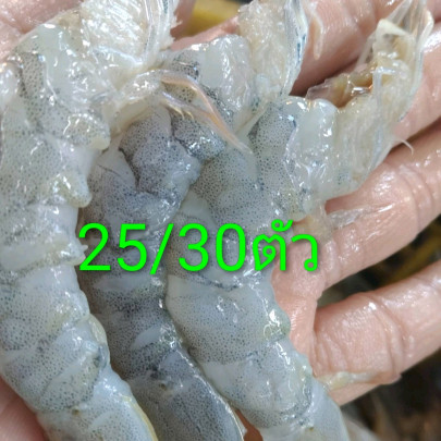 กุ้งขาวแกะไม่เอามันไว้หางผ่าหลัง25/30ตัวแกะแล้วเหลือน้ำหนักเต็ม 1. 4 ขีด