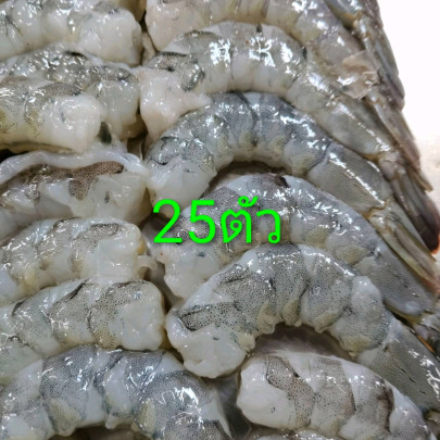กุ้งขาวแกะตัดหัวไว้หางขาหลัง 25 ตัวโล 1 โลจะเหลือ 5 ขีดครึ่งเต็ม