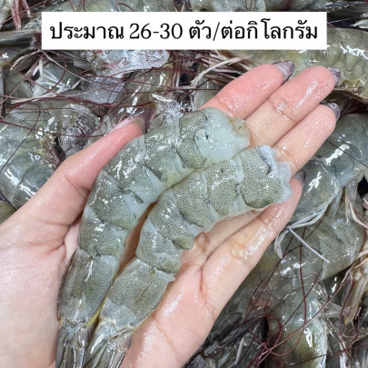 • ขนาดกุ้ง : ประมาณ 26–30 ตัว/กิโลกรัม • น้ำหนักเนื้อกุ้งหลังแกะที่จะได้ประมาณ : 10 กิโลกรัม • จำนวนกุ้งโดยประมาณ : 1,040 – 1,200 ตัว • กุ้งสด เนื้อแน่น แกะเปลือกไว้เหลือหาง สะดวกพร้อมนำไปประกอบอาหาร