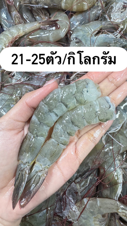 • ขนาดกุ้งก่อนแกะ : ประมาณ 21–25 ตัว/กิโลกรัม • น้ำหนักเนื้อกุ้งหลังแกะที่จะได้ประมาณ : 1 กิโลกรัม • กุ้งสด เนื้อแน่น แกะเปลือกไว้เหลือหาง สะดวกพร้อมนำไปประกอบอาหาร