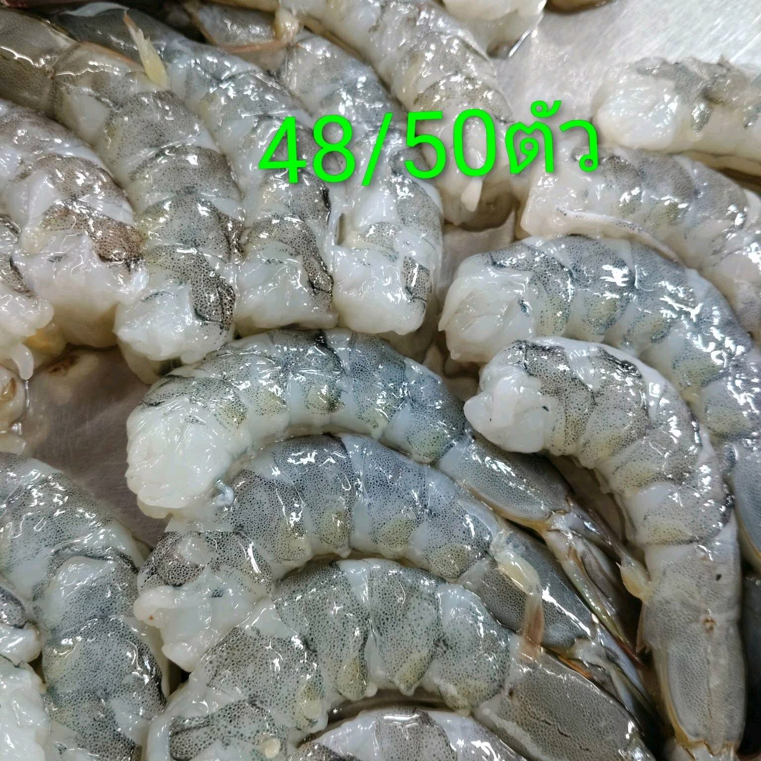 กุ้งขาว48.50ตัวโล.1.กิโลแกะเปลือกผ่าหลังไว้หางแกะเสร็จจะเหลือ0.5ขีด