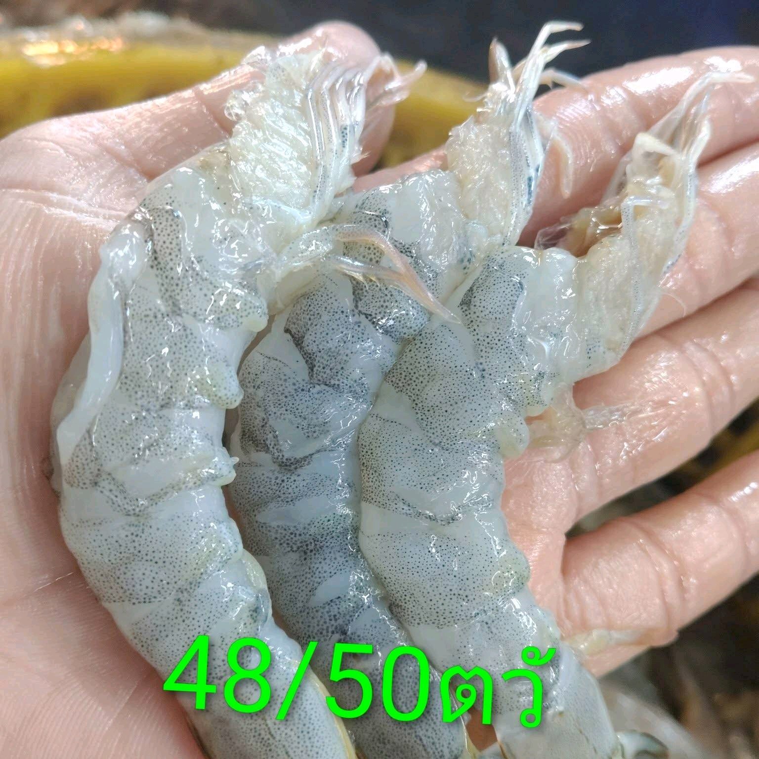 กุ้งขาว48.50ตัวโล.5 กิโลแกะเปลือกผ่าหลังไว้หางแกะไว้คางเอามันออกแกะเสร็จจะเหลือ3.5กิโล