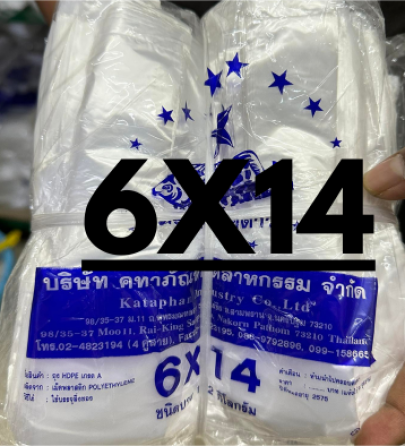 ถุงหิ้วตราปลาน้ำเงิน [บาง] ขนาดครึ่งกิโล/แพ๊ค 6*14