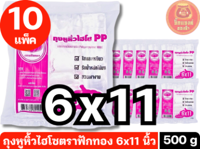 ถุงหูหิ้วไฮโซ ตราฟักทอง ขนาด 6x11 นิ้ว 500g [1 แพ็ค บรรจุ 10 ห่อ]