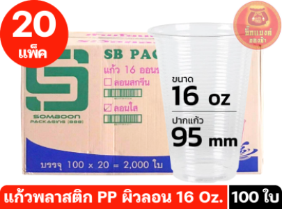 แก้วพลาสติกใส(PP) ผิวลอน ขนาด 16 ออนซ์ [1 ลัง บรรจุ 20 แพ็ค (2,000 ชิ้น)]