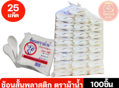 ช้อนพลาสติกสั้น ตราม้าน้ำ บรรจุ100ชิ้น [ 1หิ้ว 25แพ๊ค 2,500ชิ้น ]