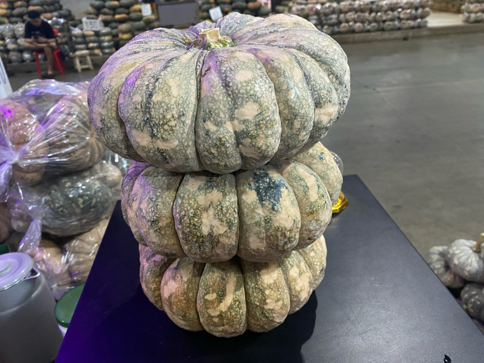 ขนาด1.5-1.8 กก.รวม 3ลูก 5 กก. ผลแป้น เนื้อหนา เหนียว มัน เหมาะสำหรับ ทำสังขยา บวด นึง ฟักทองหนึบ แกงไตปลา แกงเปรอะ ทำอาหารได้หลากหลายชนิด