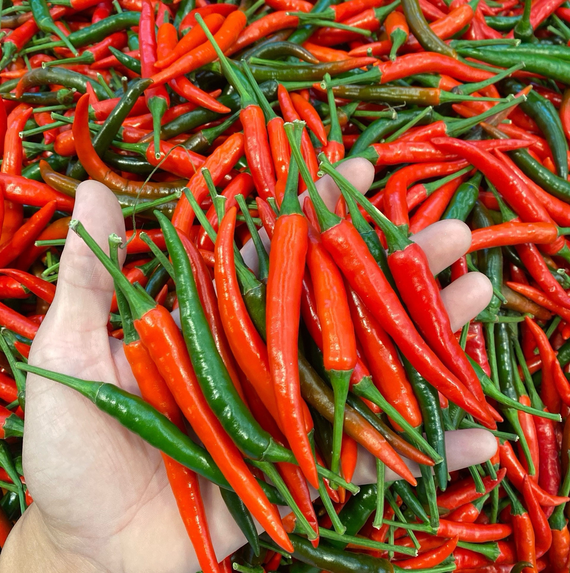 พริกจินดาแดง (แดงไทย) มีเขียวปน ถ่ายจากสินค้าจริง