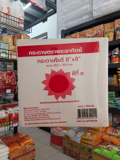กระดาษโรตี ขนาด 8x8 นิ้ว ตรา พระอาทิตย์ ปริมาณ 1,000 กรัม