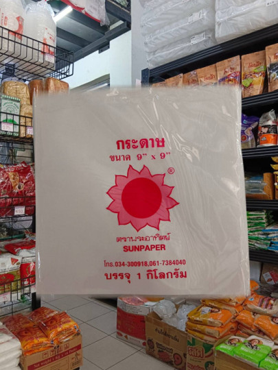 กระดาษโรตี ขนาด 9x9 นิ้ว ตรา พระอาทิตย์ ปริมาณ 1,000 กรัม
