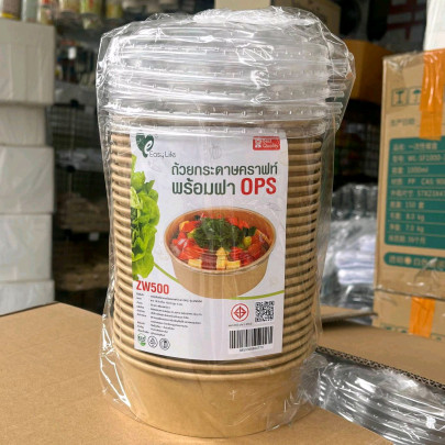 ถ้วยกระดาษคราฟท์ พร้อมฝา OPS ขนาด 500 ml. ตรา EASY LIFE บรรจุ 300 ชุด / ลัง