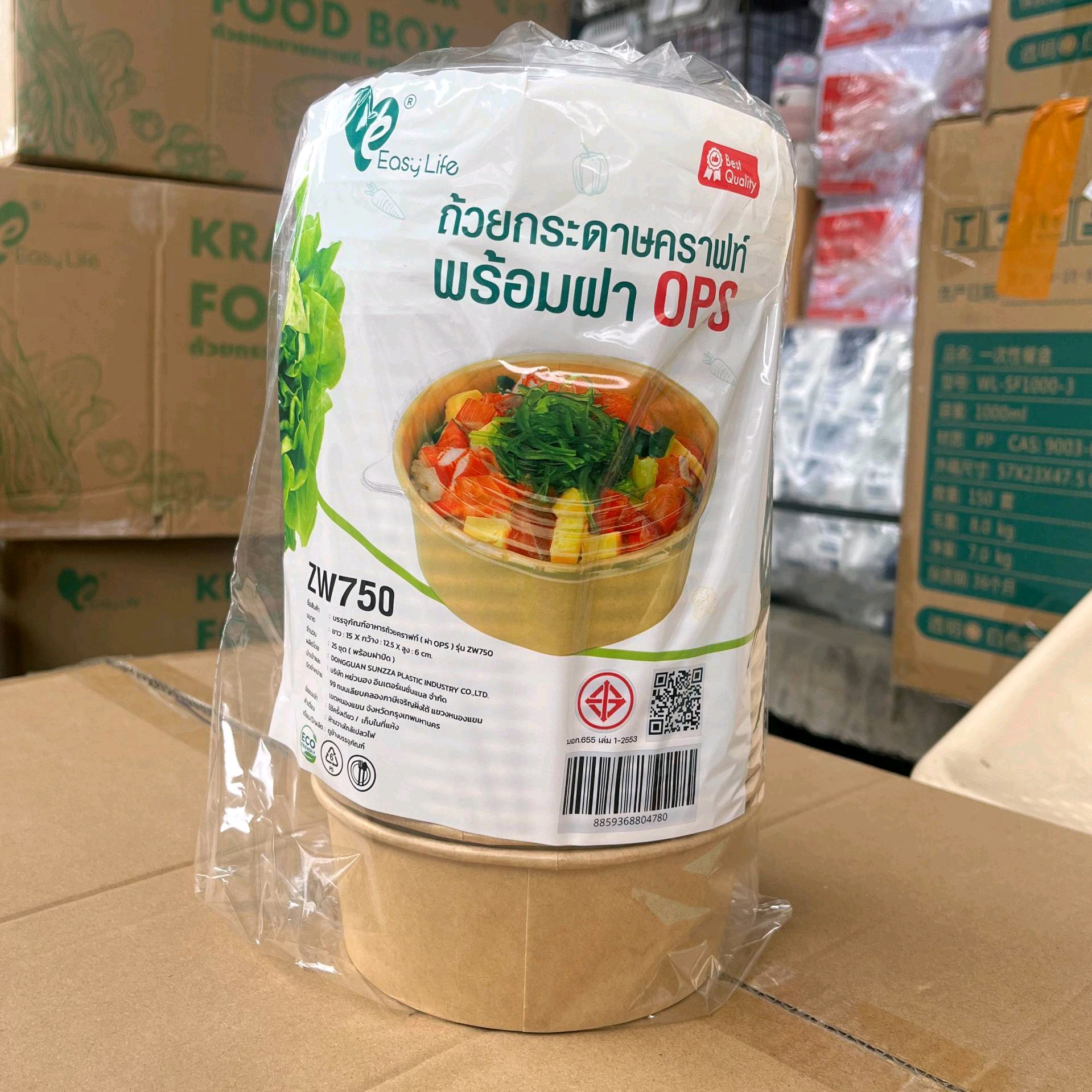 ถ้วยกระดาษคราฟท์ พร้อมฝา OPS ขนาด 750 ml. ตรา EASY LIFE บรรจุ 25 ชุด / แพ็ค
