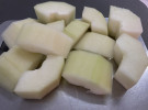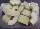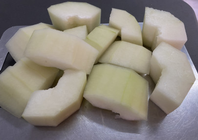 ฟักแก่ปอกหั่น ซิ้นขนาด 2x2x1 นิ้ว ทำแกง แกงจืด