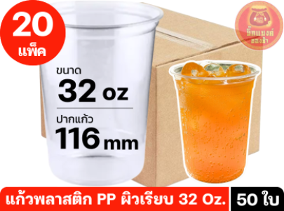 แก้วพสาสติก(PP) ผิวเรียบใส ขนาด 32 oz. (แก้วโอ่ง) [1 ลัง บรรจุ 20 แพ็ค (1,000 ชิ้น)] หมายเหตุ : สินค้าแต่ละ LOT อาจมายี่ห้อไม่เหมือนกัน แต่คุณภาพเทียบเท่ากัน เช่น M buddy, ตราแมว
