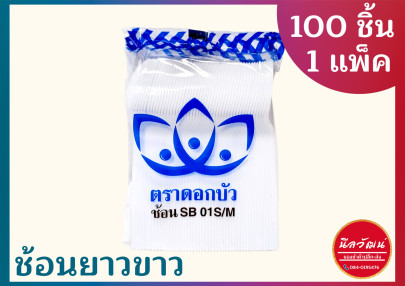 ช้อนยาวพลาสติกสีขาว ตรา ดอกบัว จำนวน 1 แพ็ค บรรจุ 100 ชิ้น