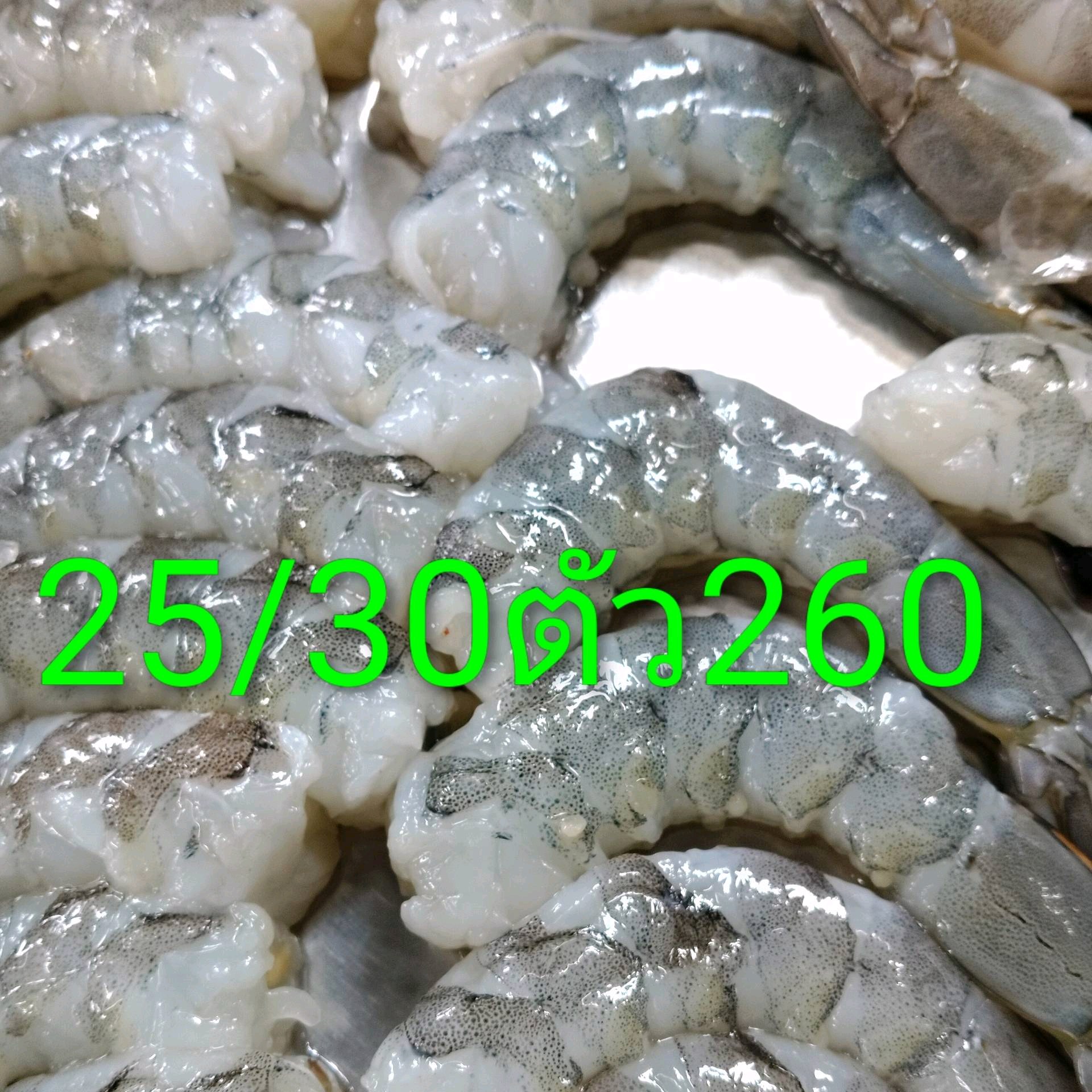 กุ้งตัดหัวไว้หางขาหลังใช้ 25-30 ตัวโลราคา 260 บาทแกะแล้ว กิโลกรัม1.6 ขีด