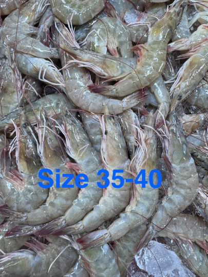 กุ้งขาว 35 ถึง 40ตัว/โล สีกุ้งอาจจะไม่มีตรงกับภาพ เนื่องจากกุ้งเข้าใหม่ทุกวัน ปรับเปลี่ยนไปตามสภาพน้ำแต่ละพื้นที่ของการเลี้ยง